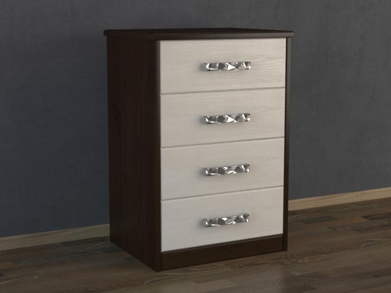 На выбор предлагаются актуальные цвета древесины, в том числе оттенки орех и груша. Купить изделия возможно в стандартной и индивидуальной комплектации. Под заказ изготавливаются комоды с другими параметрами по высоте, с дополнительным ящичком и автодоводчиками закрытия, что несущественно сказывается на цене.