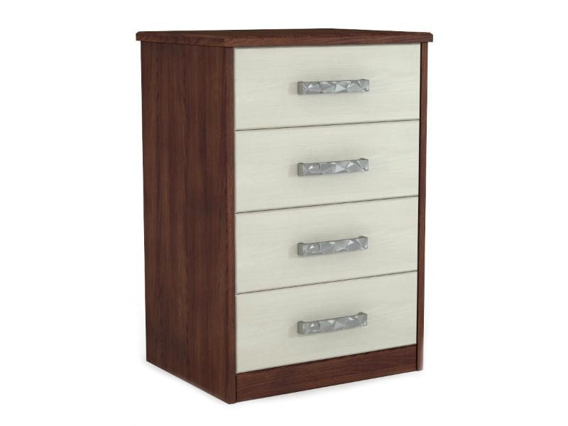 На выбор предлагаются актуальные цвета древесины, в том числе оттенки орех и груша. Купить изделия возможно в стандартной и индивидуальной комплектации. Под заказ изготавливаются комоды с другими параметрами по высоте, с дополнительным ящичком и автодоводчиками закрытия, что несущественно сказывается на цене.