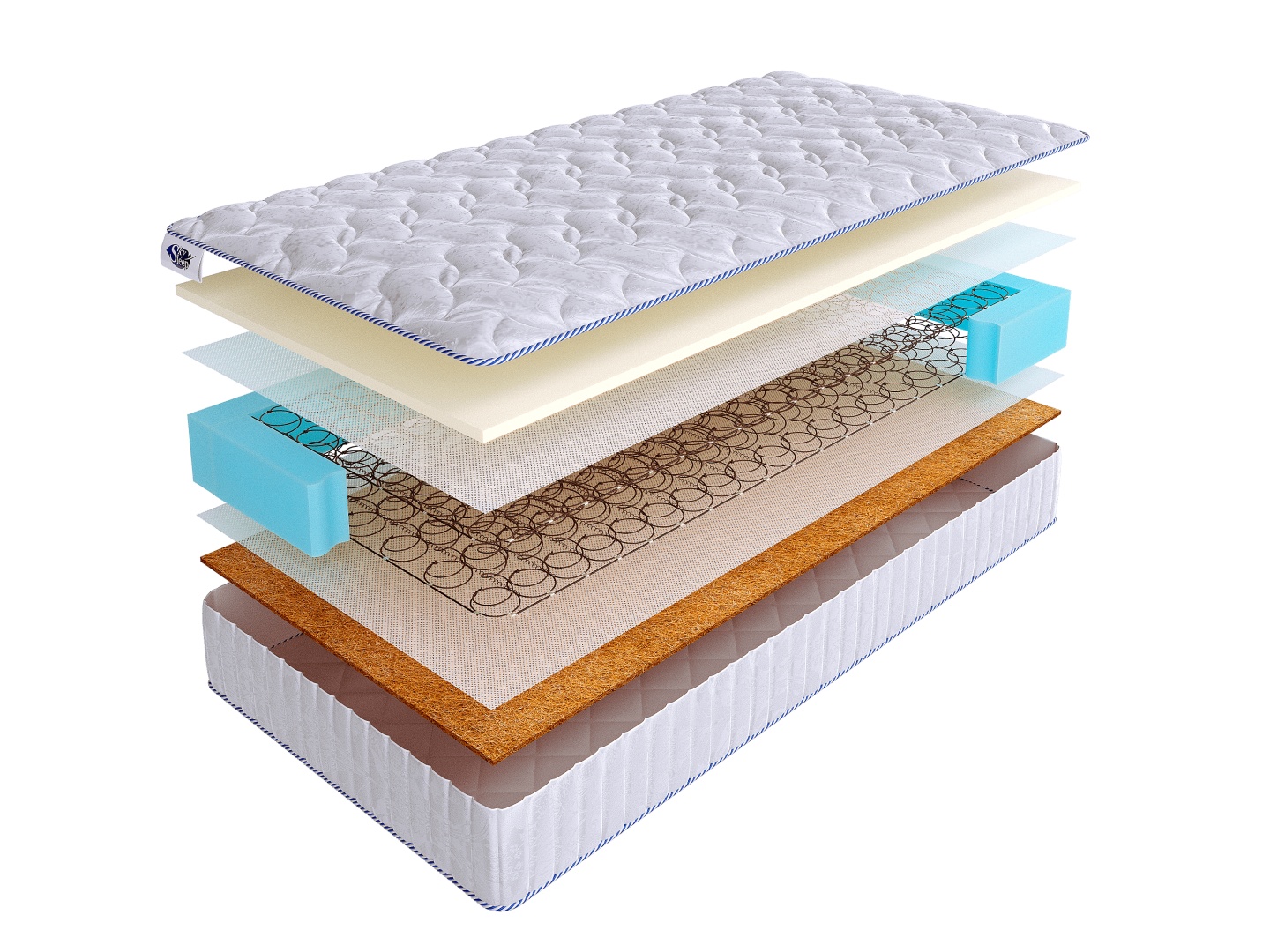 В основе матраса лежит пружинный блок «Боннель» отличающийся своей прочностью и долговечностью.