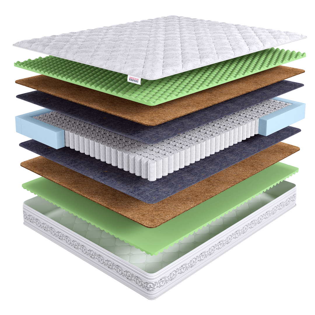 Уникальная комбинация латексированной кокосовой койры и искусственного латекса с конволюторной резкой придает матрасу жесткость выше средней. Это обеспечивает надежную опору для позвоночника и гарантирует комфортный сон. Микромассажный эффект матраса способствует максимальному расслаблению мышц и улучшению кровообращения, что особенно важно для здоровья спины и шеи.