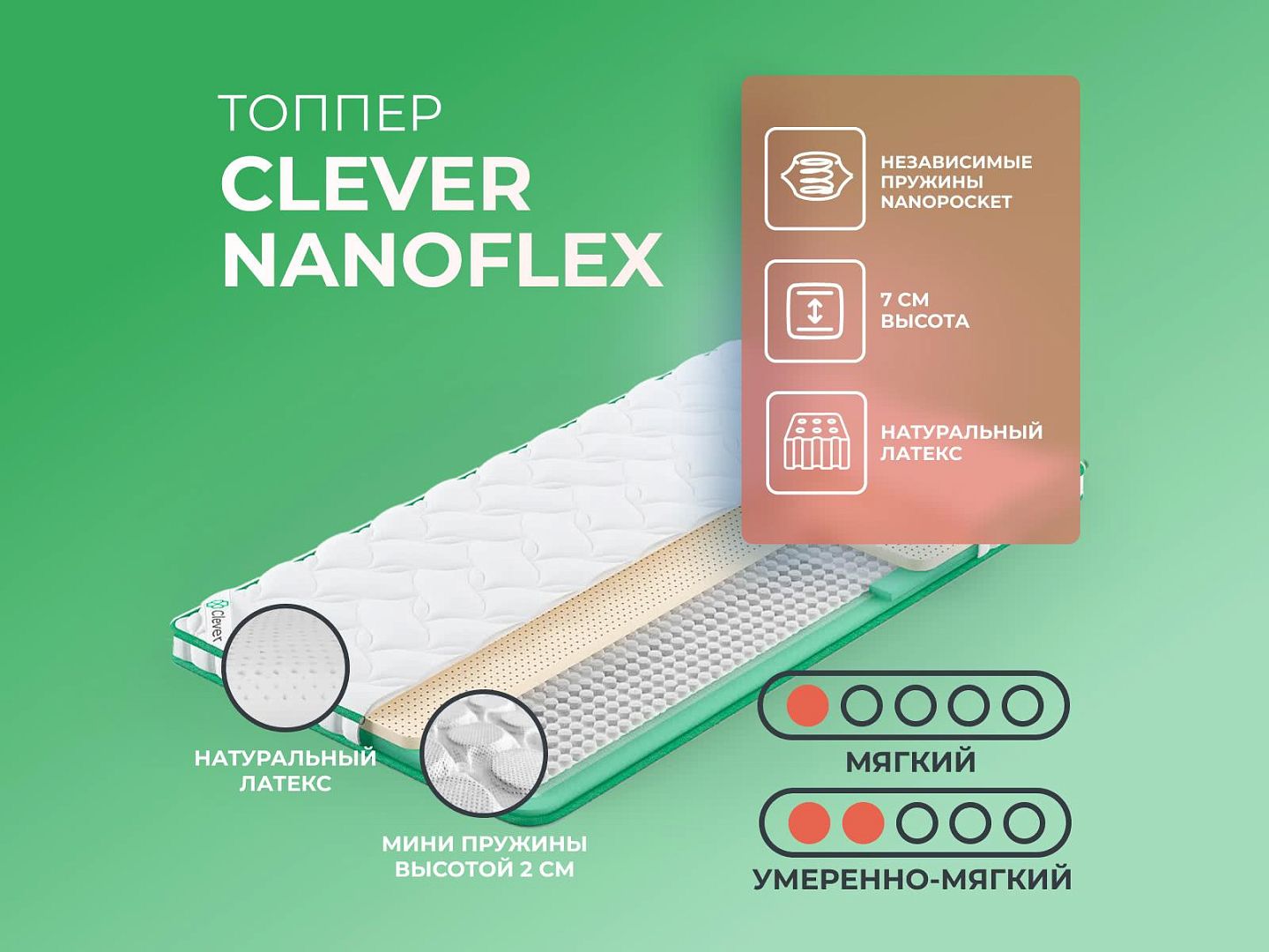 Интернет-магазин Dream-Expert.ru представляет матрас Топпер Clever NanoFlex производства фабрики Clever. Купить данную модель — значит обеспечить себе здоровый позвоночник и комфортный сон на долгие годы.